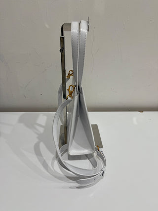 Vintage Celine Gancini Leather Bag White Gold Size Medium With Shoulder Strap