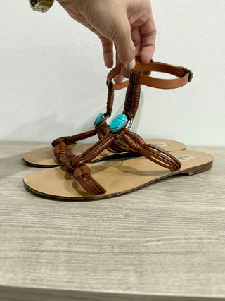 Valentino Turquoise Scarab Leather Ankle Strap Flat Sandals Brown Womens 39/US 9