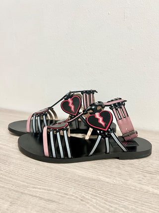Valentino’s Loveblade Patent Leather Ankle Strap Flat Sandals Black/Pink EU 36