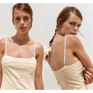 NWT Zara Sleeveless Spaghetti Strap Mini Dress Ecru Beige Combination Women's L
