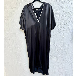 NWT Zara Satin Effect Rhinestones V Neckline Midi Dress Black Women's Size Small