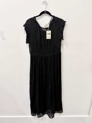 NWT Zara Sleeveless Embroidered Lace Midi Dress with Slip Black Women's Size S