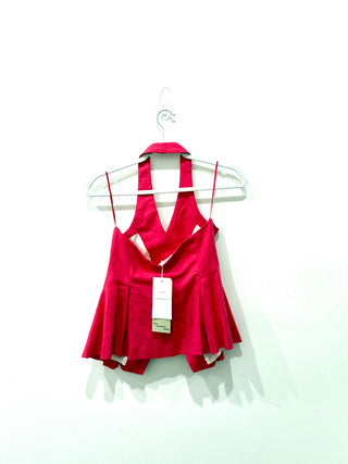 NWT Zara Sleeveless Halter Neck Open Back Waist Coat Vest Red Women's Size XS