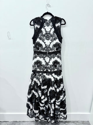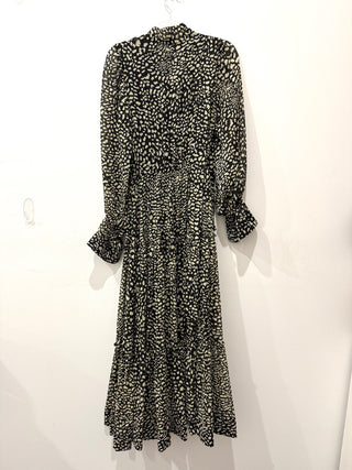 NWT Alexis Cisely Animal Print Bell Sleeve Tiered Midi Dress Onyx Womens Size XS