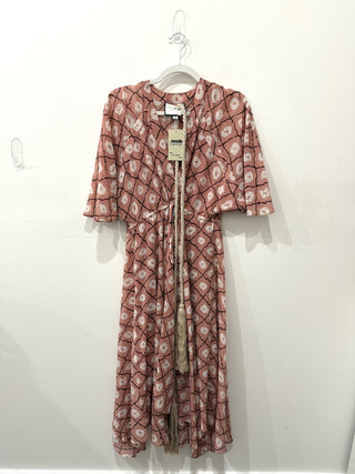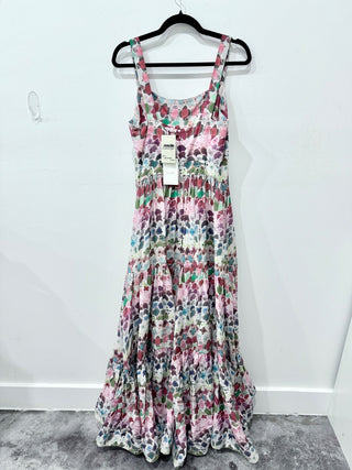 Alexis Sania Patterned Handkerchief Hem Midi Dress Blush White Women's Size XS