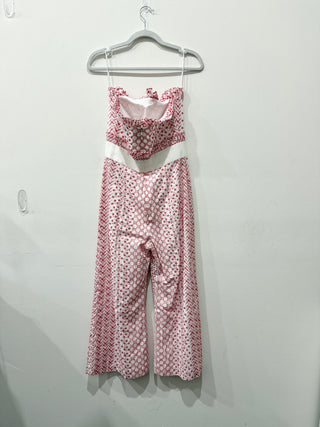 Alexis Sydow Chain Print Sleeveles Wide Leg Halter Jumpsuit Cream Womens Size XS