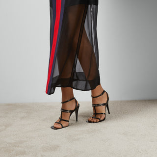 Gucci Leather Horsebit 105mm Strappy Stilettto Heel Sandals Black Women's EU 38
