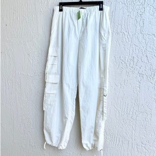 ZARA High-Rise Flat Front Relaxed Straight Chino Pants Blue Women's Size Large