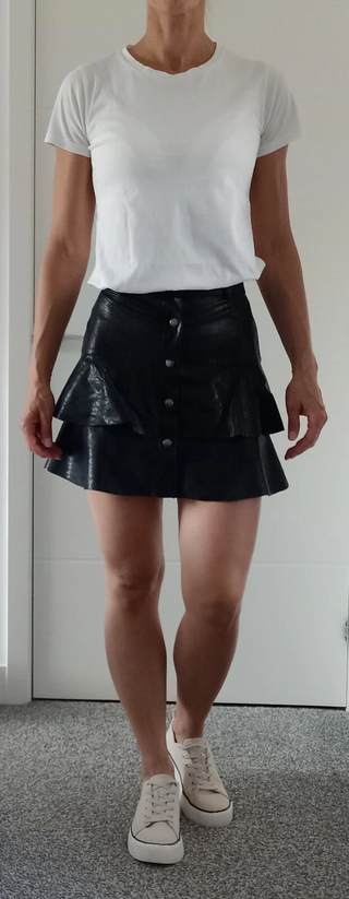 Zara High Waisted Coated Faux Leather Ruffle Tiered Mini Skirt Black Women's XS
