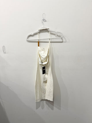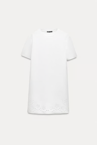 Zara Faux Suede Short Sleeve Eyelet Detail Shift Mini Dress White Women's Small