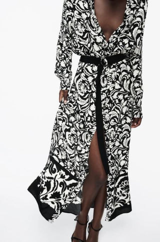 Zara Floral Printed Button Front Maxi Shirt Dress Black White Women's Size XL