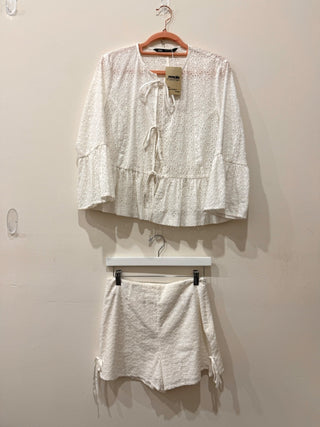 Zara Eyelet Peplum Blouse & Flat Front Shorts Set White Women's Top M / Bottom S