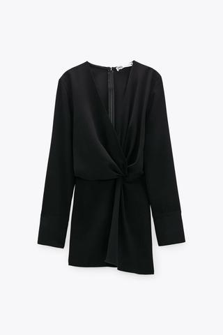 Zara Faux Wrap Knot Tunic Blouse with Gold Button Cuffs Black Womens Size Medium