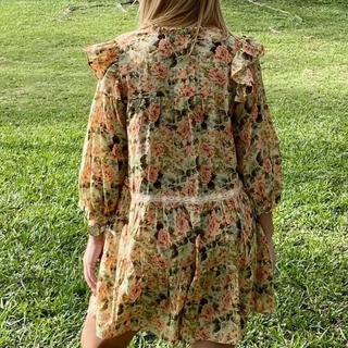 Zara Floral Print Puff Sleeve Lace Trim Tiered Mini Sundress Multi Womens Medium