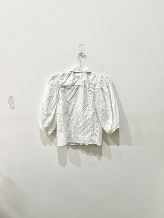 Zara Puff Sleeve Button-Front Shirt with Perforated Embroidery White Women's XS