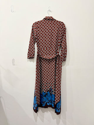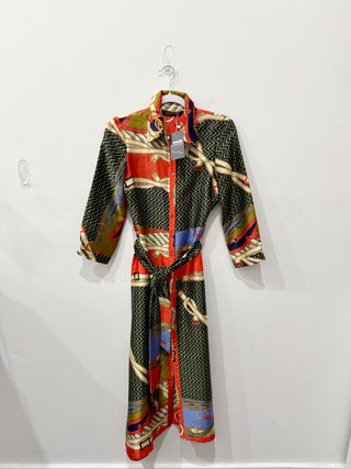 Zara Satin Scarf-Print 3/4 Sleeve Tie Waist Midi Shirt Dress Multi Women's Size XS