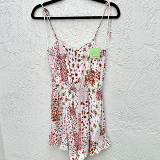 Zara Spaghetti Straps Floral Print Ruffle Hem Romper Pink Women's Size Small