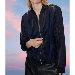 Zara Striped Organza Long Sleeve Full Zip Bomber Sheer Jacket Navy Womens Medium