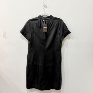 Zara Short Sleeve Pleated Trim High Neck Leather Mini Dress Black Women's Size M