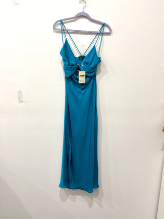 Zara Sleeveless Asymmetric Cut-Out Satin Effect Midi Dress Blue Women's Size XS