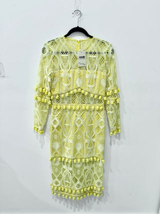 Alexis Callie Embroidered Eyelet Lace Pom-Pom Midi Dress Yellow Women's Large
