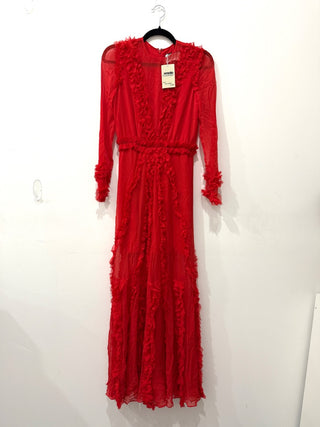 Alexis 100% Silk Cascading Ruffles Janine Evening Maxi Dress Red Women's Size XS