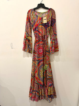 Alexis Charisma Paisley Print Belted Flounce Maxi Dress Mystic Womens Size Small