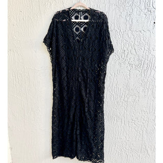 Anthropologie Dolman Sleeve Sheer Crochet Cover Up Maxi Dress Black Women's XS