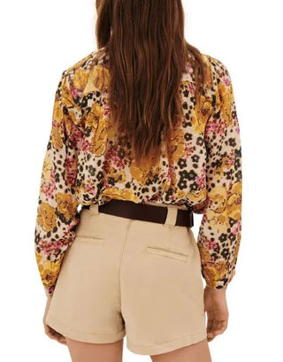 NWT BA&SH Doddy Poplin Floral Button Front Blouse Ochre Yellow Women's Size XS