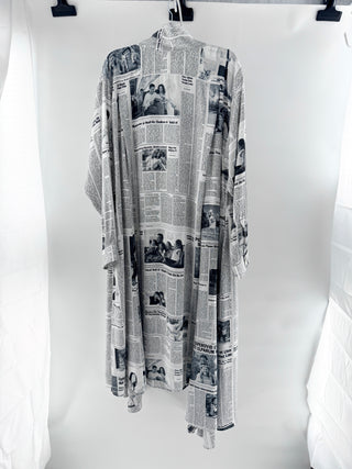 Balenciaga Newspaper Print Maxi Dress Tie Neck White Black Women's FR 40 / US 8