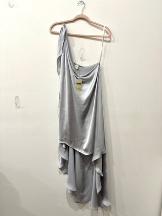 Baobab Marea One Shoulder High-Low Sheen Satin Dress Gray Women's Size Medium
