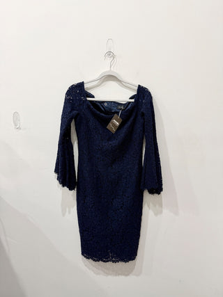 Bardot Solange Off-the-Shoulder Bell Sleeve Lace Bodycon Midi Dress Navy Size 8
