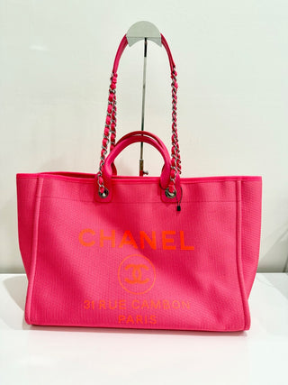 Chanel Deauville Extra Large Neon Pink/Orange Canvas Tote Shopper Bag