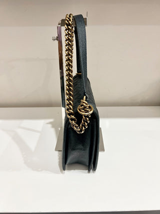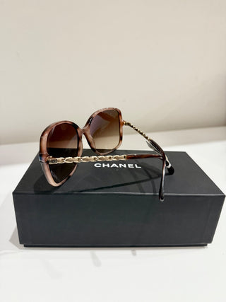 Chanel Chain Link Black Frame Leather Temple Oversized Women Sunglasses 5215-Q
