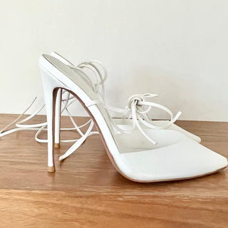 NWOT Femme Wrap Ankle Strap Pointed Toe Stiletto Sandal White Women's Sz 37/ 6.5