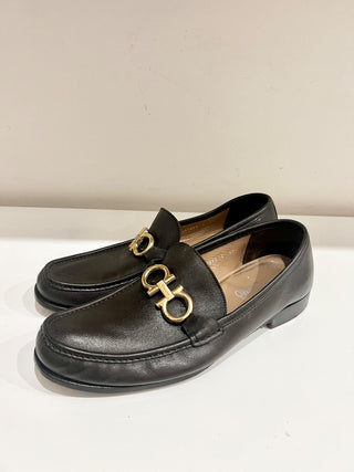 Salvatore Ferragamo Crown Gancini Leather Loafers Shoes Black Men's Size US 8.5