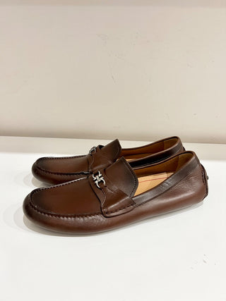Salvatore Ferragamo Florin Leather Moccasin Driving Loafer Shoes Brown Men 10.5E