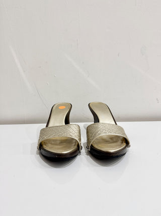 Salvatore Ferragamo Snakeskin Leather Slide Sandals Metallic Gold Women's US 7.5