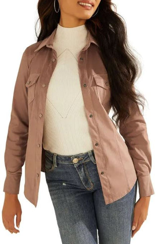 NWT Guess Daisy Faux Suede Snap Button Front Shirt Gray Rose Women's Size Small
