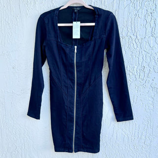 NWT Guess Long Sleeve Corset Denim Square Neck Mini Dress Tint Blue Women's XS