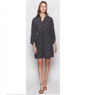 Joie Galani Floral Balloon Sleeve Button Down Mini Shirt Dress Navy Womens Small