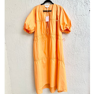 NWT L'Academie Puff Sleeve 100% Cotton Yona Maxi Dress Orange Small / Medium