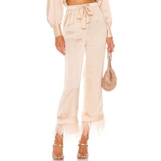 L'Academie The Alix Top & Feather Trim The Chantal Pant Beige Cream Womens Small
