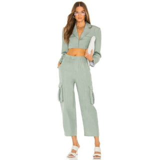 L'ACADEMIE The Robby Crop Blazer & Cargo Pants Sage Green Women's Size Small