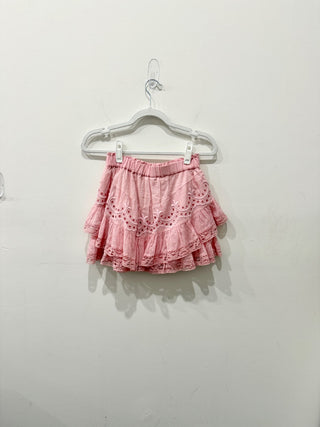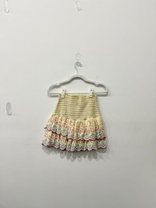 LoveShackFancy Smocked Waist Desta Mini Skirt Aqua Reflections Womens Medium