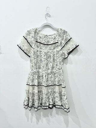 LoveShackFancy Natasha Ruffle Trim Short Sleeve Eyelet Mini Dress Black Women XS