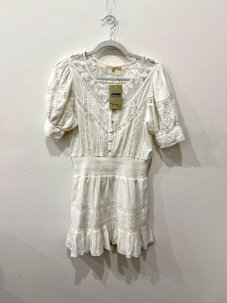 LoveShackFancy Jaislyn Embroidered Mini Dress True White Women's Size Medium