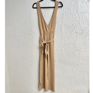 Majorelle Deep V Neckline Ribbed Knit Flare Leg Jumpsuit Camel Women's Medium