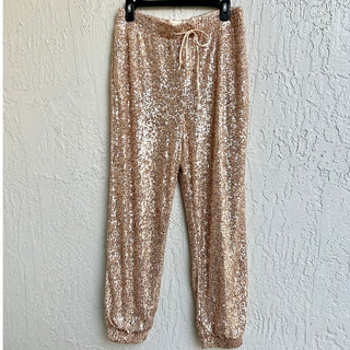 Majorelle Embellished Sequin Cairo Jogger Pants Metallic Gold Champagne Womens M