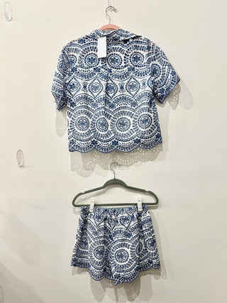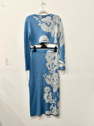 Misa Blue and White Set Long Cropped Top and Long Skirt, Top - S. Bottom - S
